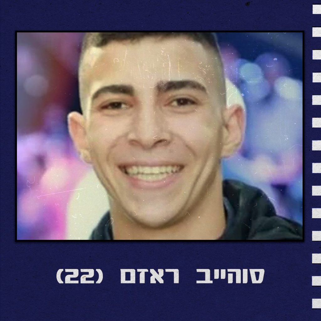 סוהייב ראזם, בן ה-22, תושב בית חנינה במזרח ירושלים, עבד כנהג מיניבוס במסיבת הטבע ברעים, כשנקלע למתקפה הרצחנית של חמאס ב-7 באוקטובר. רגעים אחרי שפשטו המחבלים על מתחם המסיבה, הוא נתפס על ידם והספיק להתקשר למשפחתו ולהודיע להם שהוא בסדר, ושהם לוקחים אותו איתם לעזה. זה היה סימן החיים האחרון שהתקבל ממנו… אחכ המחבלים הוציאו אותו להורג.
